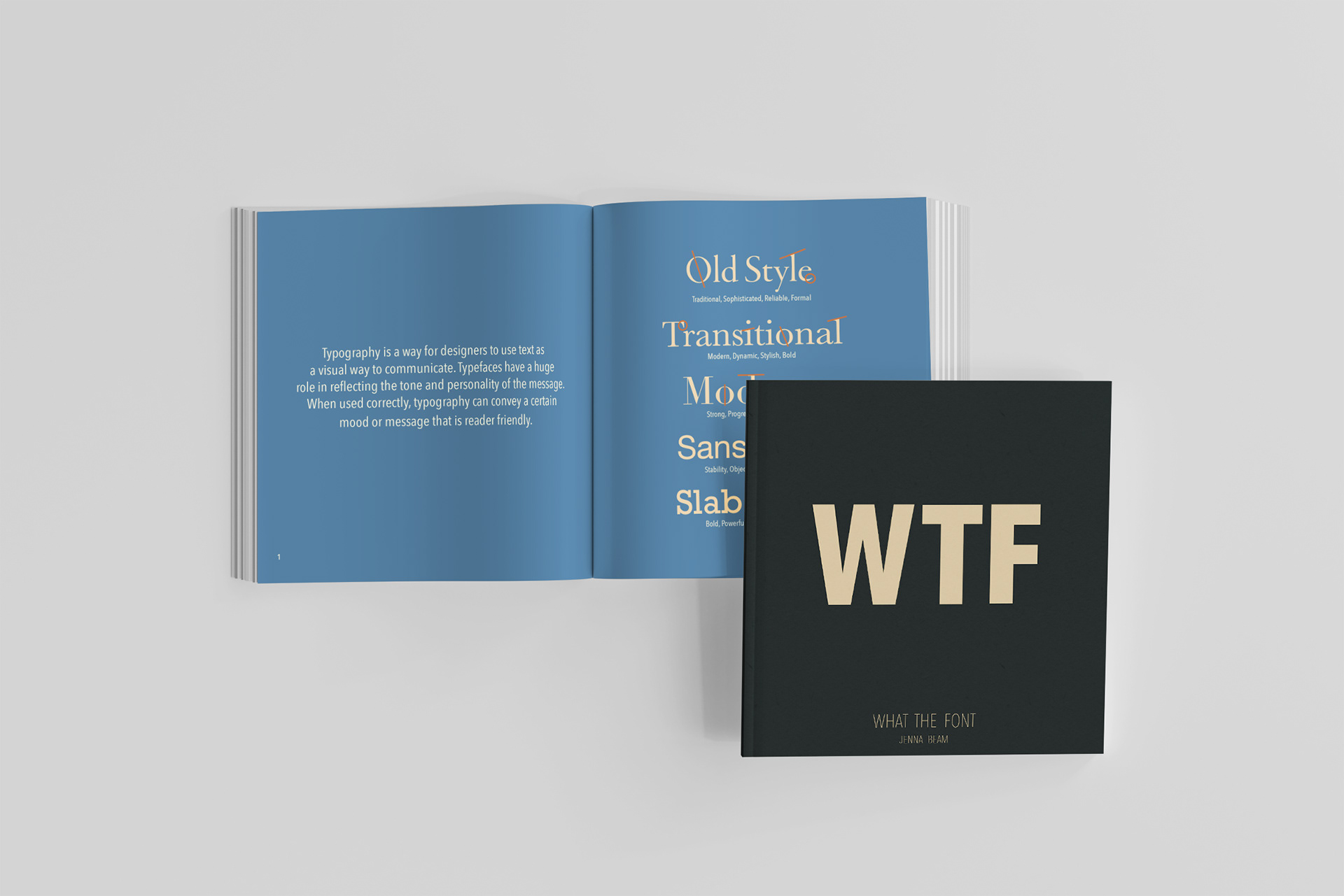 What The Font (WTF) is a type specimen book that introduces the history, basic fundamentals, and intended uses for the different classifications. A minimalistic modern approach designed specifically to help designers identify the different characteristics of the main 5 type classifications.